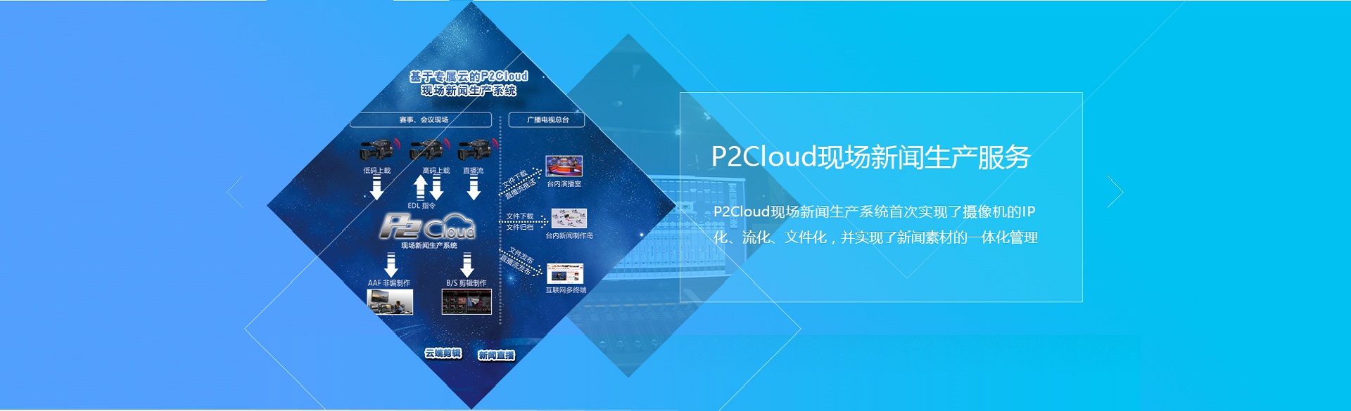 首次实现了摄像机的IP化、流化、文件化,并实现了新闻素材的一体化管理,素材的高低码关联管理等等。